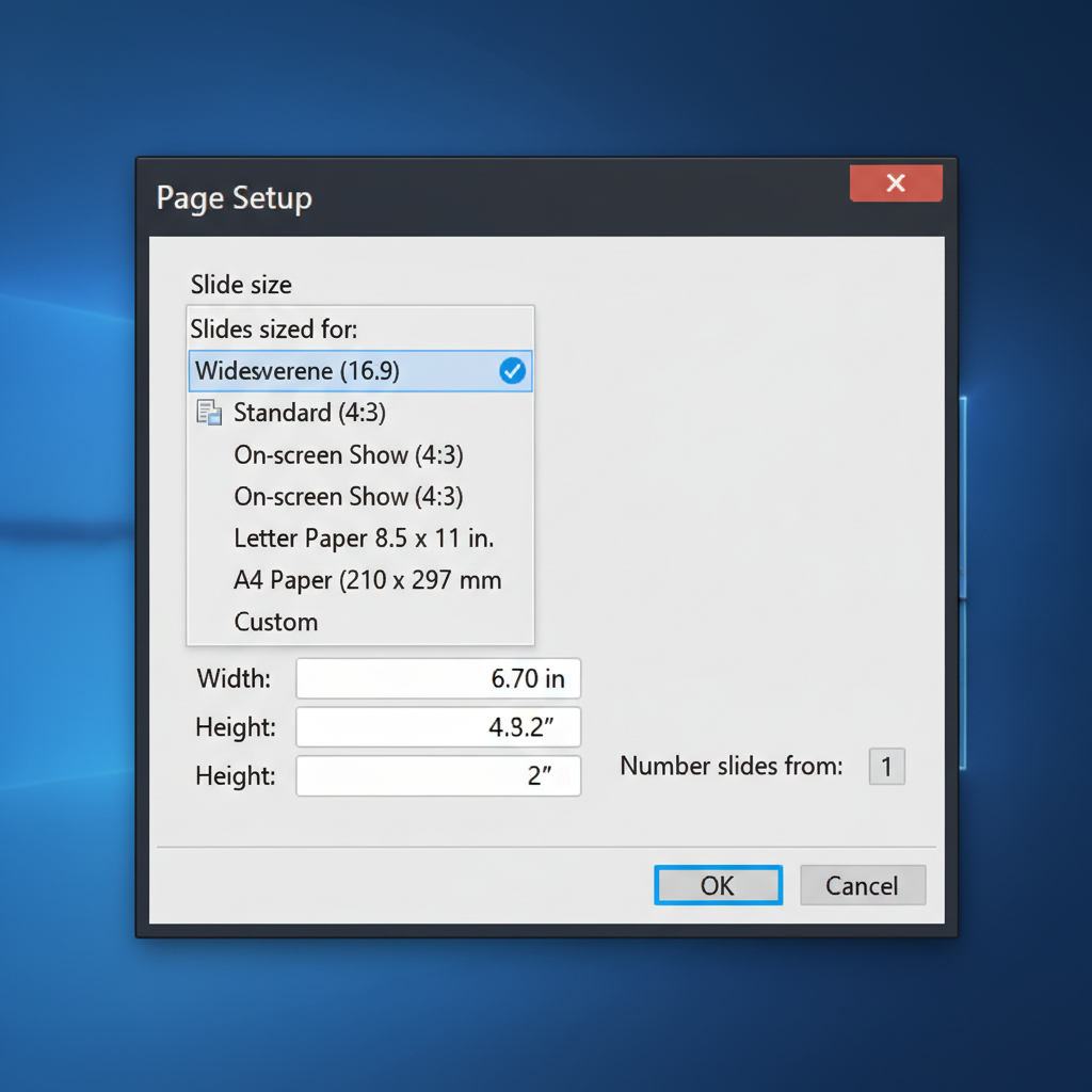Now set the slide size using width × height.