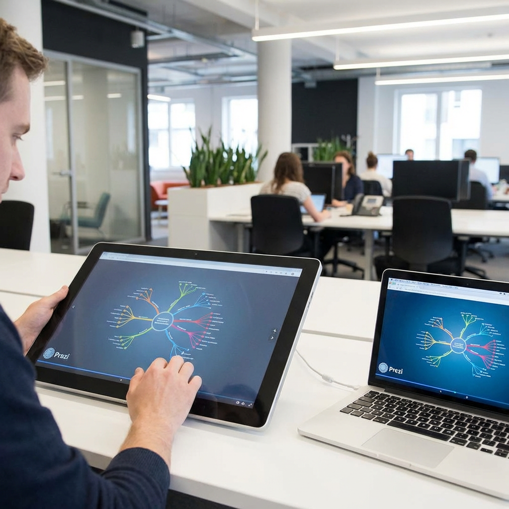 In short: Prezi is built to help you present ideas as a connected story, not a straight line of slides.